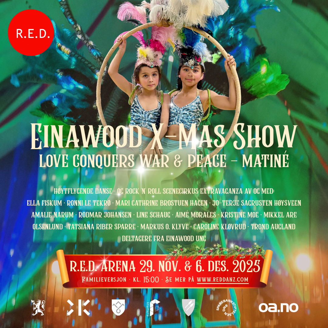I vår matiné får du en familievennlig versjon av årets Einawood X-Mas Show, med tilpassede scener og tekster. Lokale barn og unge deltar som en del av «EINAWOOD UNG» – et treårig prosjekt støttet av Sparebankstiftelsen DNB.